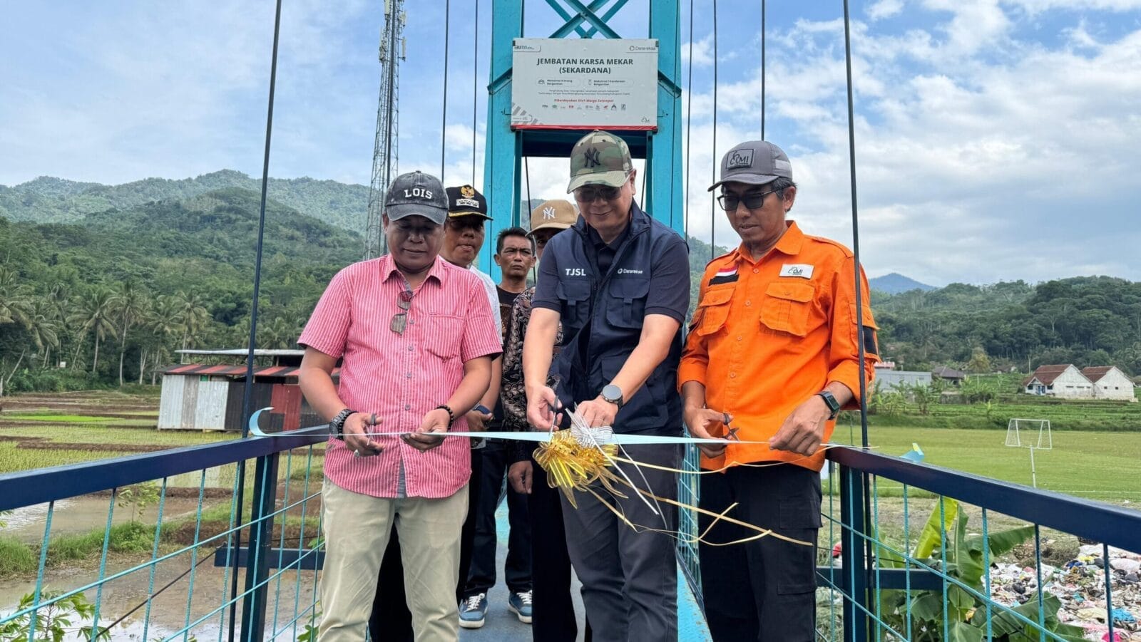 Kepala Desa Tanjung Mekar, Ade Lukmanul Hakim, A.Md. dan Kepala Desa Medanglayang, Ade Suhada menyampaikan apresiasi yang besar kepaada Holding BUMN Danareksa atas pembangunan jembatan yang telah mempermudah akses masyarakat, mendukung mobilitas, dan mendorong kemajuan desa.