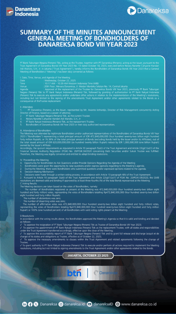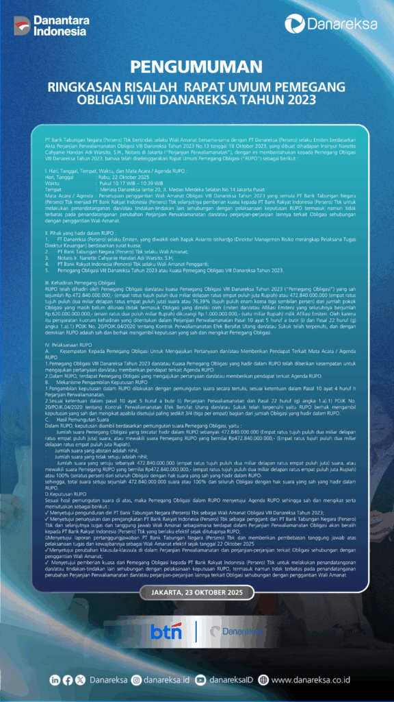 Holding BUMN Danareksa melakukan tender dalam pengadaan Jasa Konsultan Penyusunan Rencana Darurat PT Danareksa (Persero). Persyaratan/Kualifikasi yang dibutuhkan: Lokasi Pekerjaan: